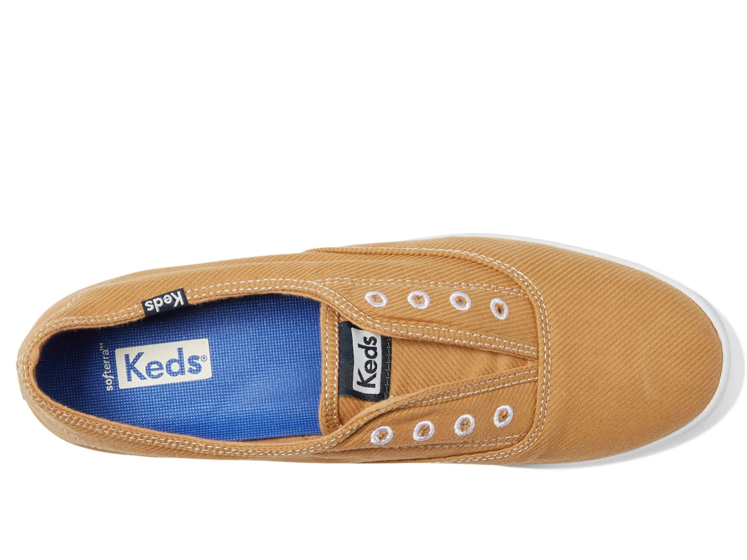 - Slip-on style with embroidered eyelets.