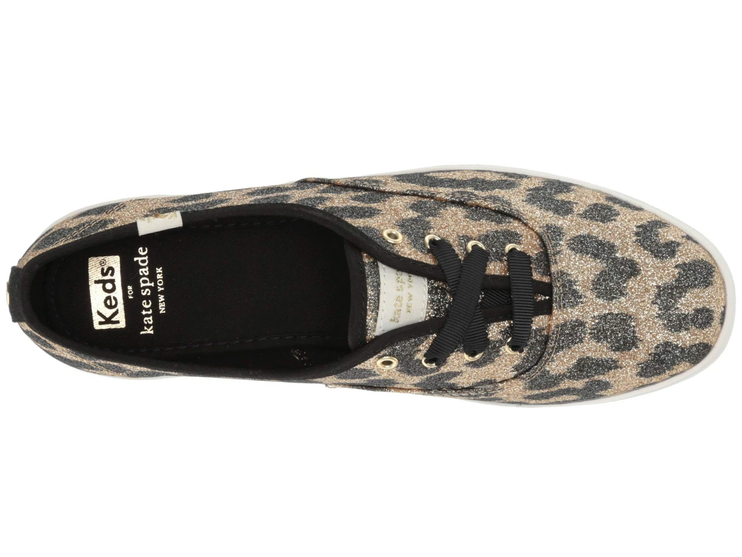 - Leopard printed and glitter covered canvas Keds x Kate Spade New York® Champion Leopard sneakers.